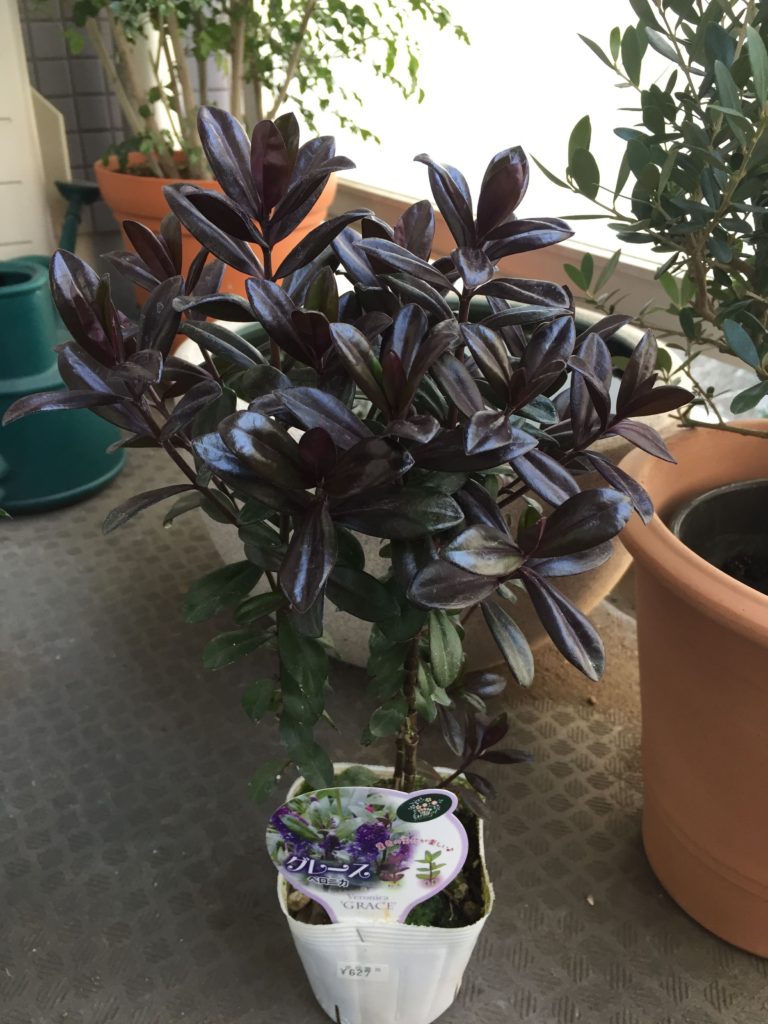 特に目的があって買ったわけではないのですが、花屋さんでたまたま目について、チョコレート色した独特の色合いが緑ばかりのベランダにアクセントになるような気がします。