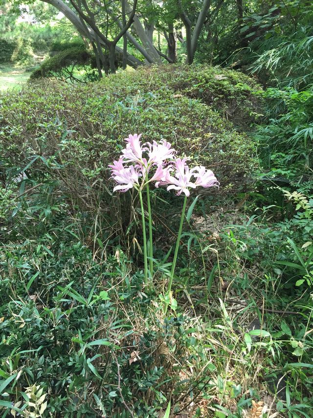 こちらは突然草むらから立ち上がって美しいピンクの花を咲かせています。