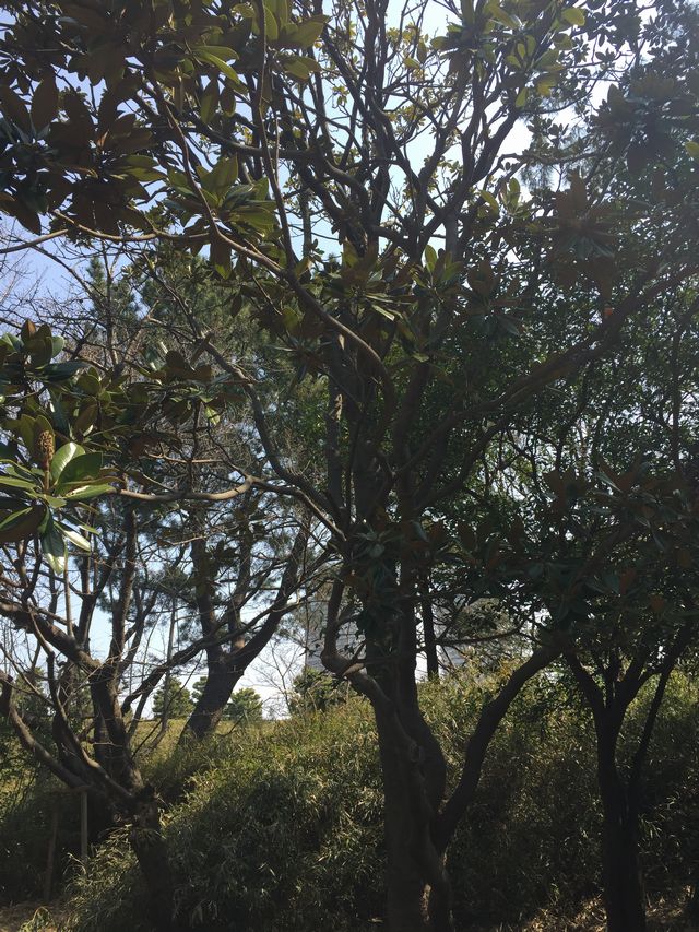 ちょうど撮影したのが春先だったため、まだ花が咲いていました。椿からはご存知のように油がとれます。鳥が運んだものでないとしたら、お台場で油を取るため幕末のお侍さんたちがあえて植えたのではないかなと想像できます。