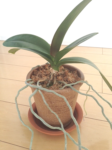 昨年白い花を咲かせた胡蝶蘭ですが、根詰まりがひどかったので、
