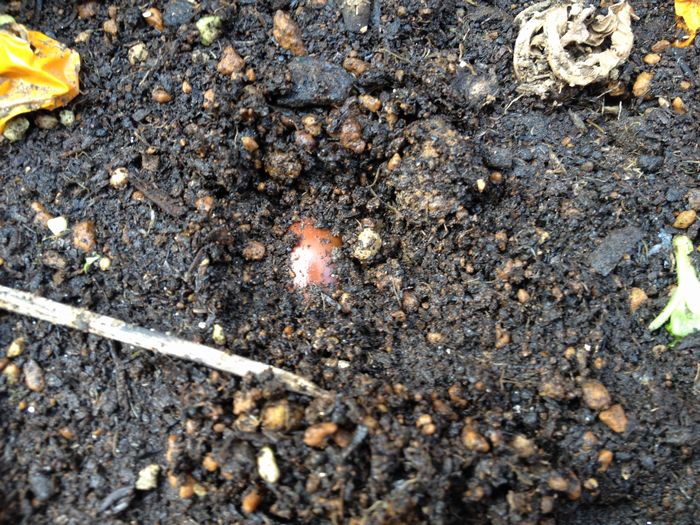 ほとんど諦めていたので、春になってトマトとキュウリをプランターに植えていました。そのため、こんな風に密集しているところから芽を出しています。。